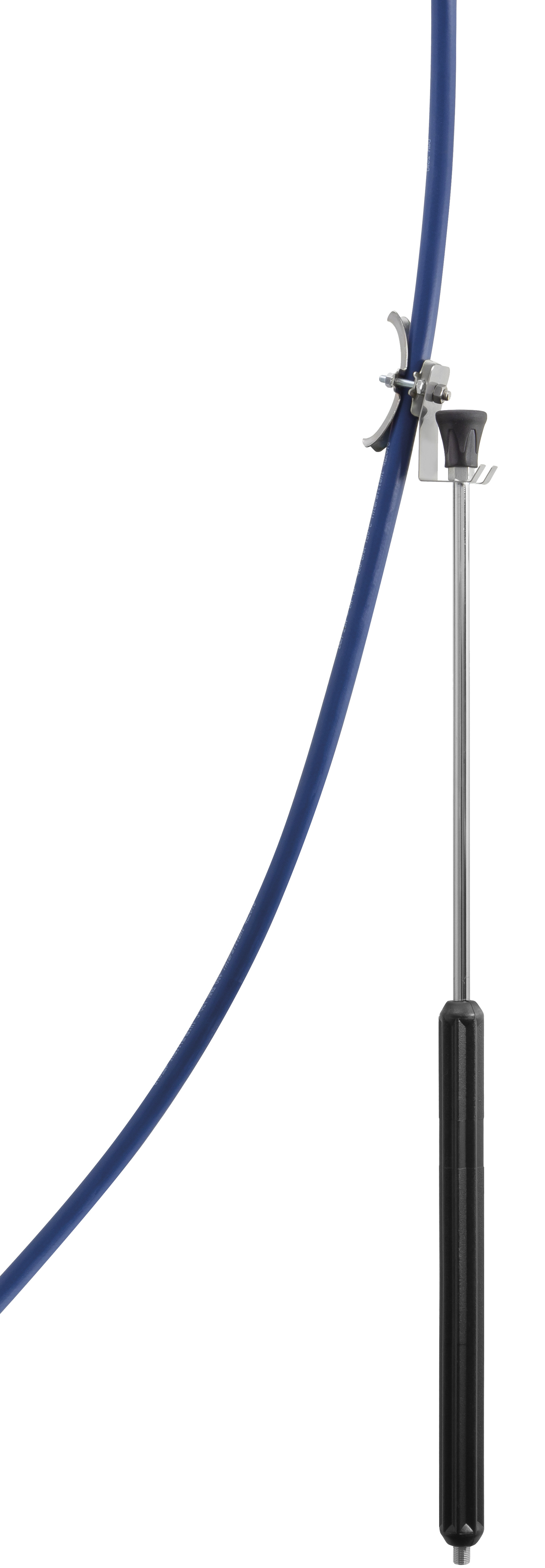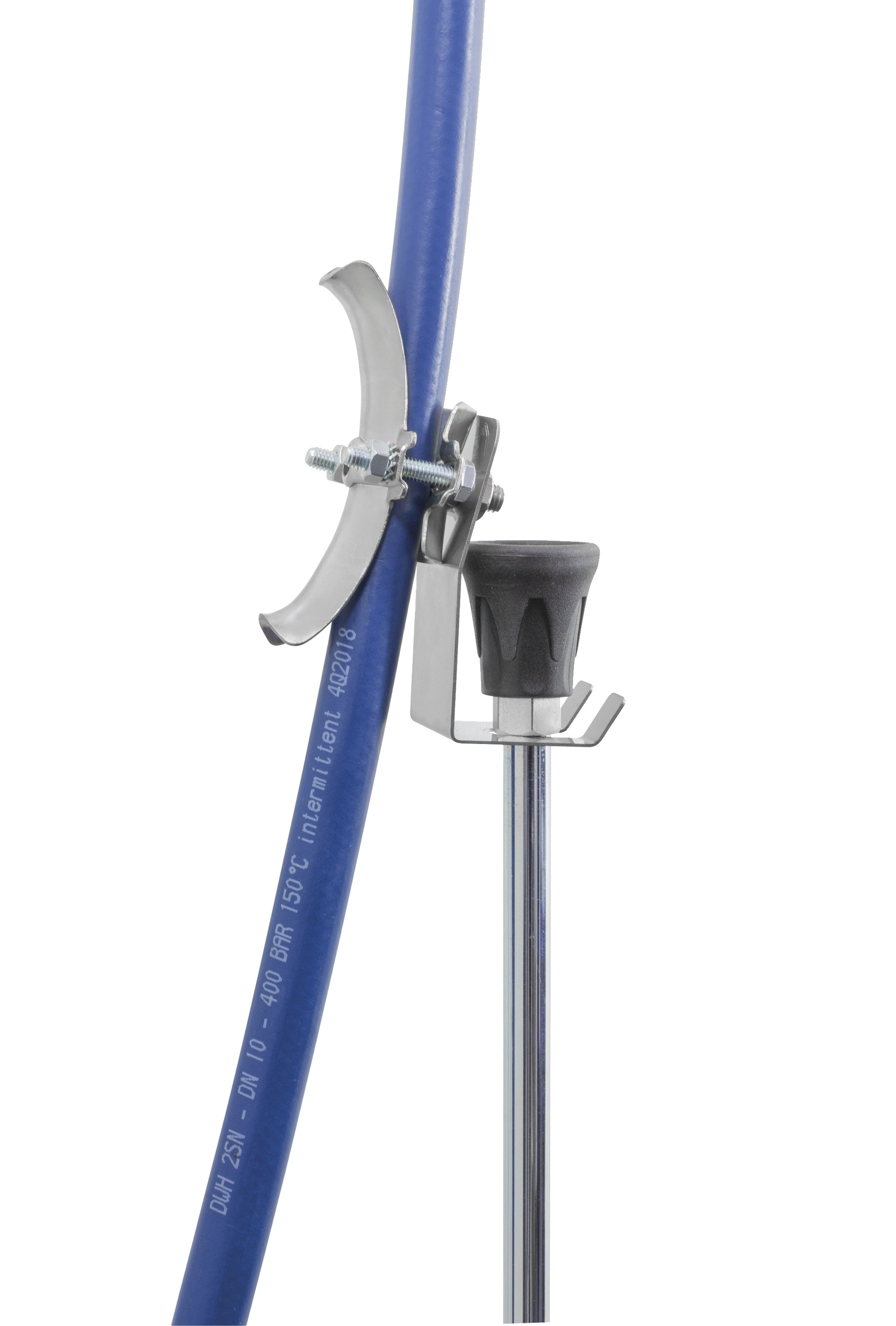 Produktinfo.Lance holder for 1 lance in stainless steel. The lance holder is attached to h.t. the hose with a galvanized hose clamp.