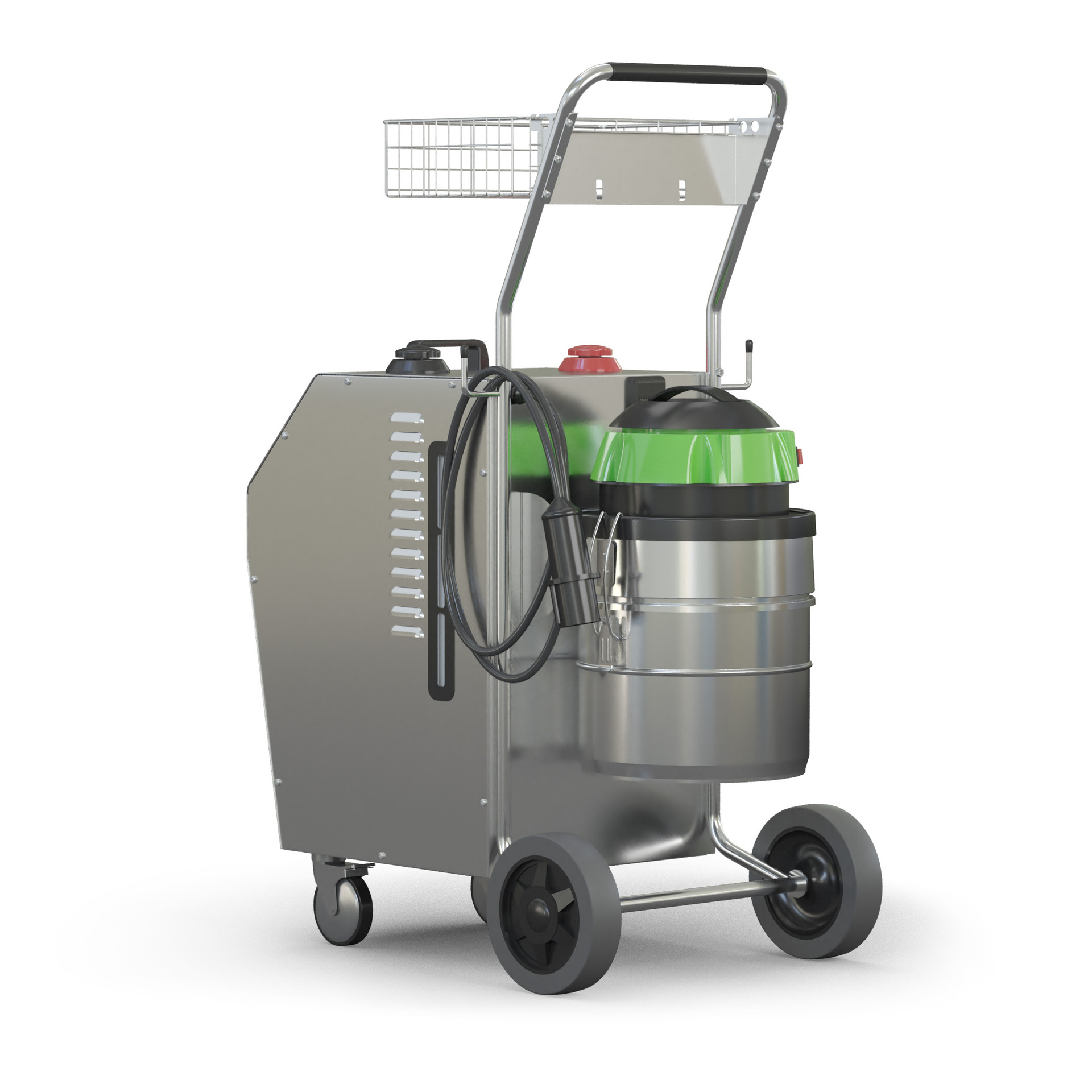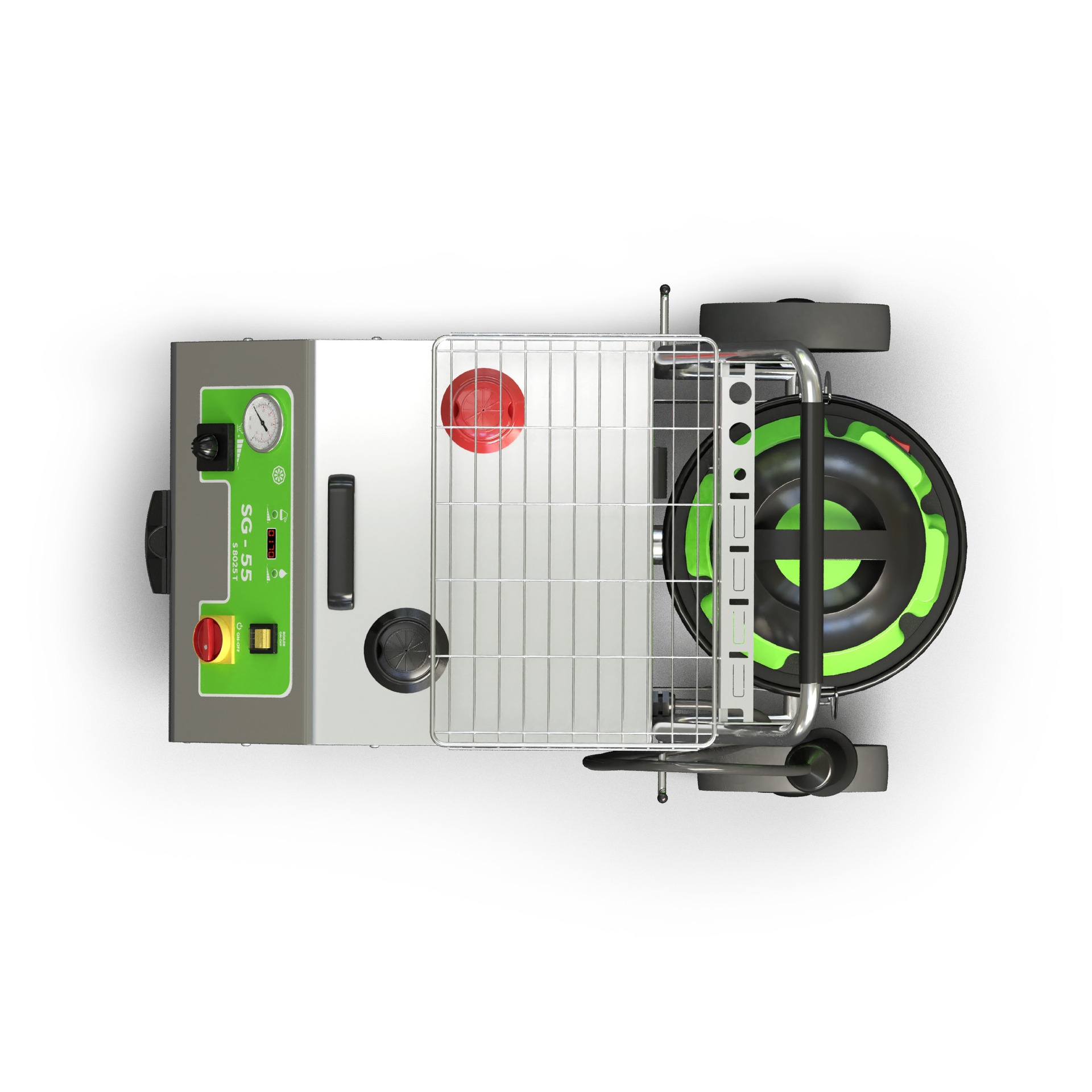 SG-55 Damprenser med profesjonell ytelse og utmerket kvalitet. Dampkraften, et naturlig element med en temperatur opp 180°C og et trykk på 8 bar, garanterer en grundig rengjøring av alle overflater uten skader. Den termodynamiske egenskapen gjør at damp kan trenge inn i dybden for å oppløse gjenværende fett i alle rom og på alle overflater, ved å bruke veldig lite vann. Du får et kvalitetsprodukt med kjele, chassis og vogn i rustfritt stål. Med SG-55 har man ubegrenset arbeidstid. Takket være reservevanntanken kan maskinen fylles uten å slå den av. En meget god maskin for autobransjen, HO.RE.CA, matvareindustrien og for rengjøring av store fellesområder.