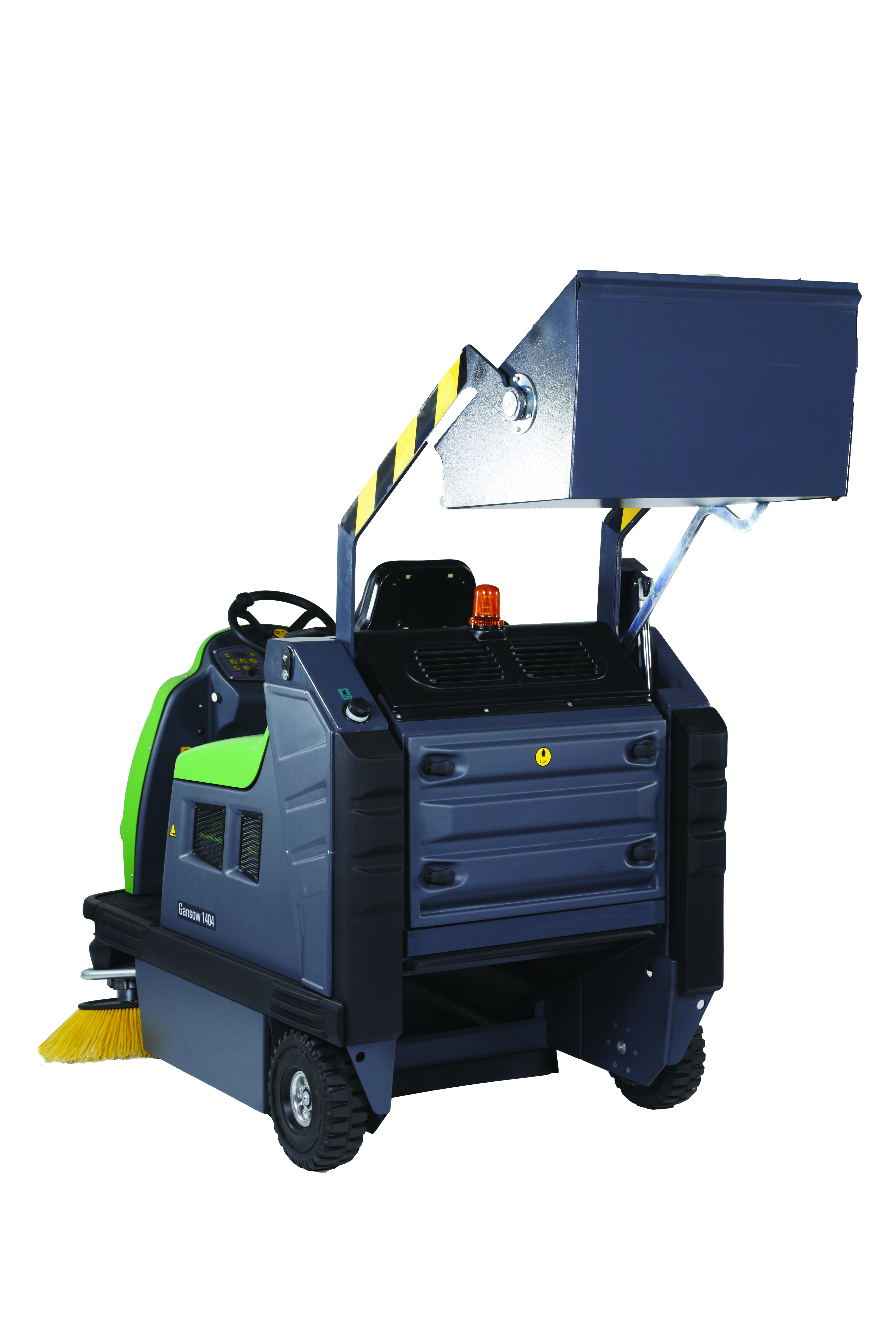 Produktinfo.1404 DP-P Hybrid er en profesjonell kraftig feiemaskin, som leveres i hybrid versjon for innen- og utendørs bruk. Den har drift fremover og bakover og alle nødvendige betjeningsorganer for sikker og effektiv drift. Maskinen har med de doble sidebørstene en effektiv feiebredde på hele 1450 mm. Sidebørstene og hovedbørsten kan enkelt heves ved transport. De innebygde støvsugerene kan valgfritt kobles inn hvis fint støv ønskes fjernet. Maskinen blir levert med 2 filterkammer, slik at maskinen kan kjøres mens det andre filterkammeret rengjøres. 1404 DP-P Hybrid har selvjusterende hovedbørste og hastigheten på sidebørstene kan reguleres trinnløst. Ved kjøring i sving vil sidebørstene automatisk trekkes innover, slik at det ikke legges igjen en støvstripe. Maskinen har et hydraulisk tippesystem for avfallsbeholder. Beholderen kan tippes i alle høyder opptil 1430 mm. 1404 DP-P Hybrid har batterier og bensinmotor. Bensinmotoren driver en generator som gir strøm til fremdriftsmotorene. Når maskinen benyttes innendørs, slås bensinmotoren av og batteriene benyttes som kraftkilde. Ved utendørs feiing slås bensinmotoren på, og batteriene lades da automatisk mens maskinen brukes. Maskinen passer meget godt for feiing av større varehus, parkeringsplasser, fortau, lagerområder, parkeringshus, m.m. Batterier og lader bestilles separat. Batterilader må benyttes for optimal opplading av batteriene.