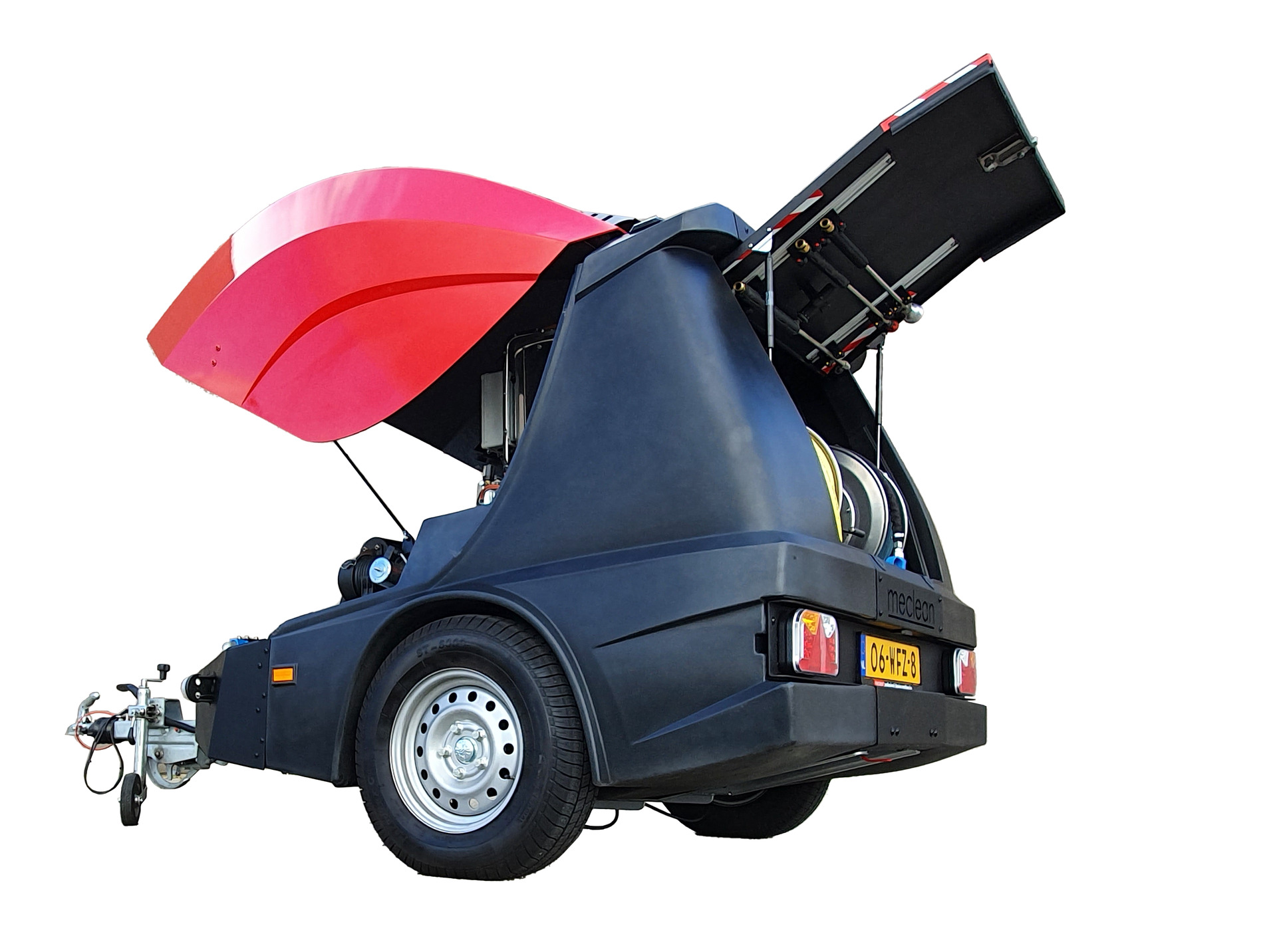 Produktinfo.Trailerjet-M er en høytrykkstilhenger som er meget robust og enkel å bruke. Den er klargjort for 100% fosilfritt/multi-fuel drivstoff som f.eks. HVO100, XTL, NESTE, Biodiesel(B100), Aspen diesel, GTL, HVO20, HVO50, etc. Meclean tilhengere er konstruert med komponenter av ytterste kvalitet. Yanmar dieselmotor, brennkamre i rustfritt stål, multi-fuel varmevekslersystem og stempelpumpe for å nevne noen. Med kvalitetskomponenter og ingen unødvendig elektronikk får man et bekymringsfritt arbeidsverktøy og en langt levende høytrykkstilhenger. Trailerjet-M leveres med 2 slangetromler i rustfritt stål med hendholdsvis 45 meter høytrykkslange og 25 meter lavtrykkslange. Den har en vanntank på 500 ltr som er innebygd i chassiset og en drivstofftank på 70 ltr. I tillegg finnes det meget mye ekstrautstyr for å kunne tilpasse hengeren etter kundes ønske. Alle Meclean tilhengere kan oppgraderes med 3 funksjoner, SteamPLUS®, AquaPlus og WeedPlus. Vi anbefaler sterkt å legge til SteamPLUS®, dette er en pantentert rengjøringsfunksjon som egner seg spesielt når kjemikalier ikke kan brukes og en frykter at overflaten lett kan bli skadet. SteamPLUS® fjerner grafitti, malingslag, tyggegummi, luftbåren forurensing, alger og mose, sopp, olje og løsemidler, klebende lag, veimerking etc. uten kjemikalier