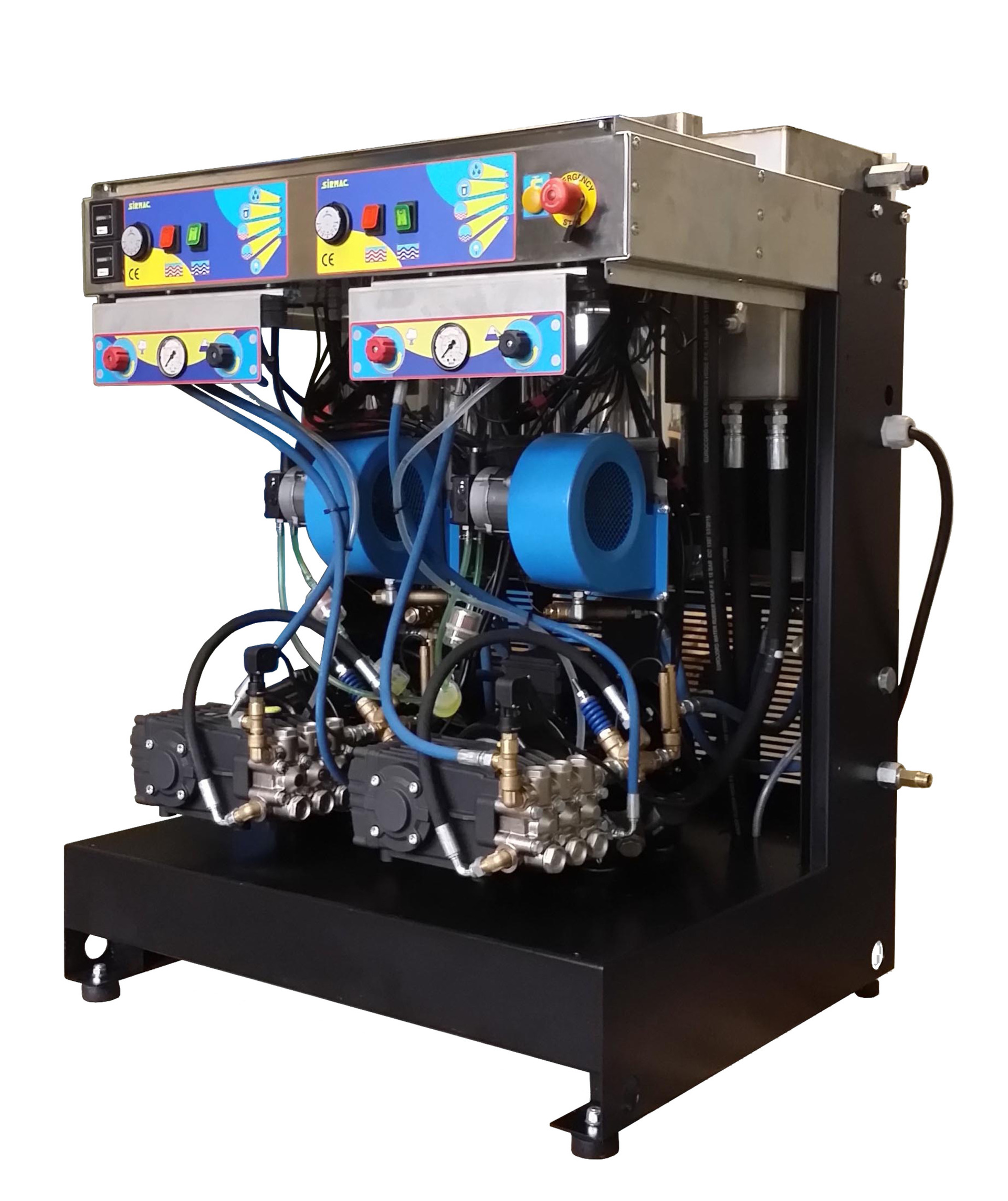 Produktinfo.Bull er et stasjonært høytrykksanlegg med 2 brennermoduler for 1-2 brukere. Det er utstyrt med 2 industrielle stempelpumper og 2 rustfrie brennkammer samt 2x kontrollpanel. Bull har ramme i lakkert stål med lydisolering og deksler i rustfritt stål. Med alle sine sikkerhetsfunksjoner og innovative løsninger er dette en av markedets råeste stasjonære varmtvannsanlegg. Passer til vask av kjøretøy i alle størrelser og industriell rengjøring. Brukes gjerne i kombinasjon med slangetromler, skinneanlegg eller røranlegg.