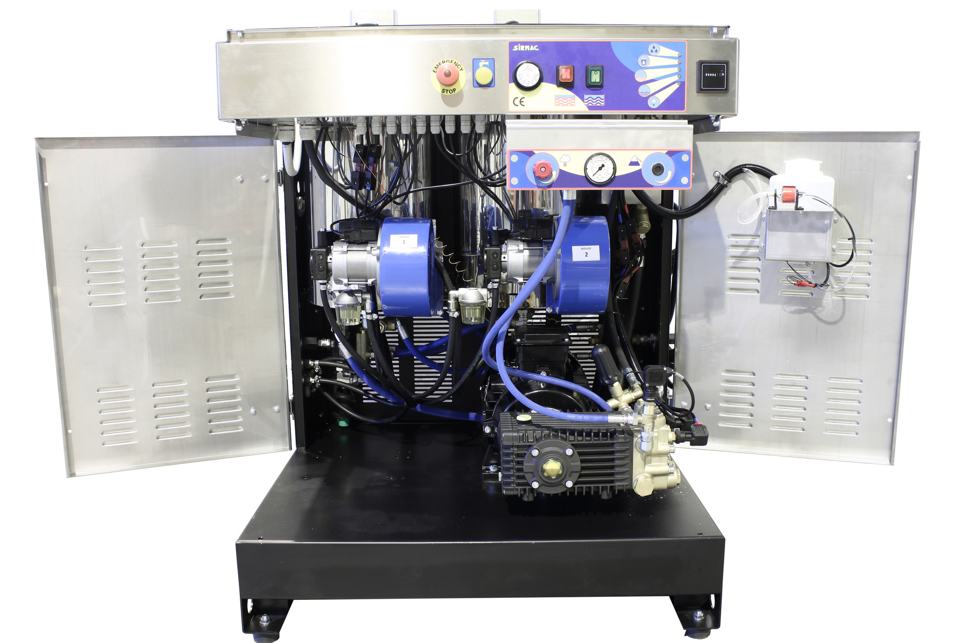 Produktinfo.Bull er et stasjonært høytrykksanlegg med 2 brennermoduler. Det er utstyrt med en industriell stempelpumpe og 2 rustfrie brennkammer samt 1x kontrollpanel. Bull har ramme i lakkert stål med lydisolering og deksler i rustfritt stål. Med alle sine sikkerhetsfunksjoner og innovative løsninger er dette en av markedets råeste stasjonære varmtvannsanlegg.