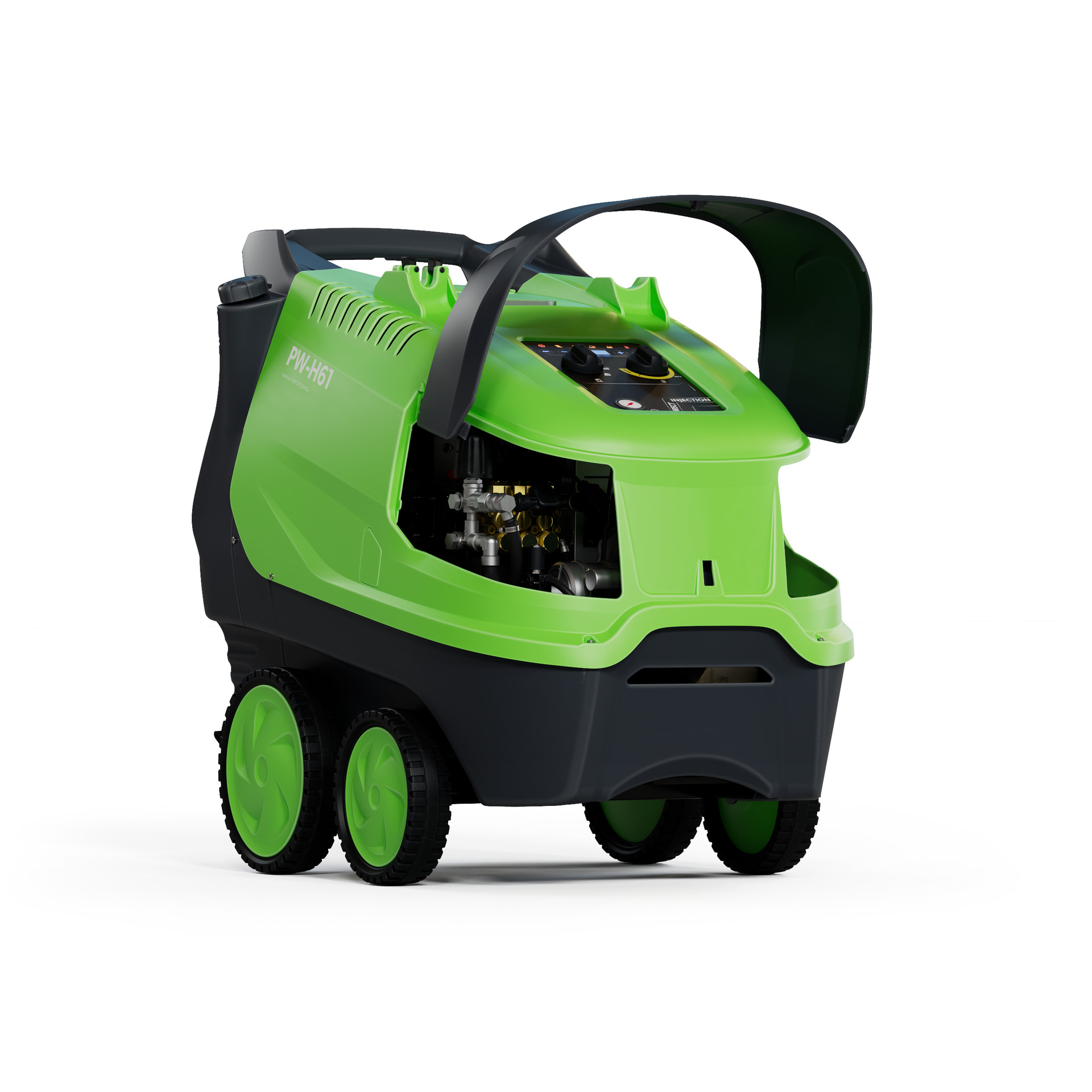 Produktinfo.Vår nye varmtvannsserie er endelig her. PW-H61 er en meget effektiv og velutstyrt tre-faset varmtvannsvasker. PW-H61 er utstyrt med et kontrollpanel med et digitalt display som varsler om det skulle oppstå en feil, noe som er med på å øke brukervennligheten på maskinen. PW-H61-serien er også gjort mer miljøvennlig. Den er produsert med opptil 60% gjenvunnet plast og i tillegg er opptil 90% av komponentene er resirkulerbare. Den har også et ECO-modus som gjør at du kan redusere dieselkostnader og utslipp med opptil 25%. PW-H61 serien har en saktegående stempelpumpe noe som gjør den mindre støyende, lengre levetid og lavere servicekostnader. I tillegg har vi oppgradert tilbehøret til pistol og lanser med KEW hurtigkoblinger. PW-H61 er den perfekte maskin for landbruket, autobransjen og industrien.