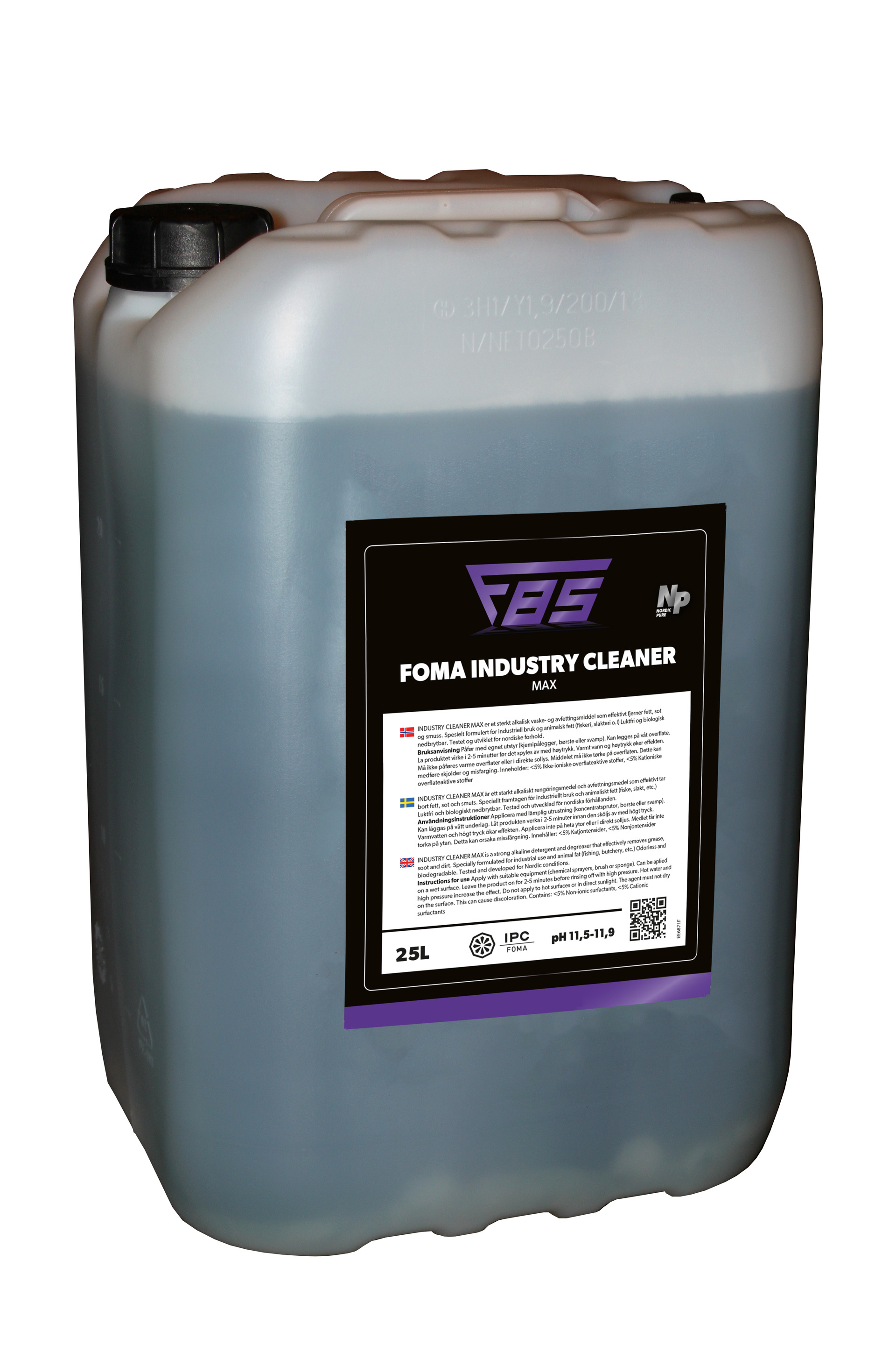 Produktinfo.INDUSTRY CLEANER MAX er et sterkt alkalisk vaske- og avfettingsmiddel som effektivt ferner fett, sot og smuss. Spesielt formulert for industriell bruk og animalsk fett (fiskeri, slakteri o.l) Luktfri og biologisk nedbrytbar. Testet og utviklet for nordiske forhold.