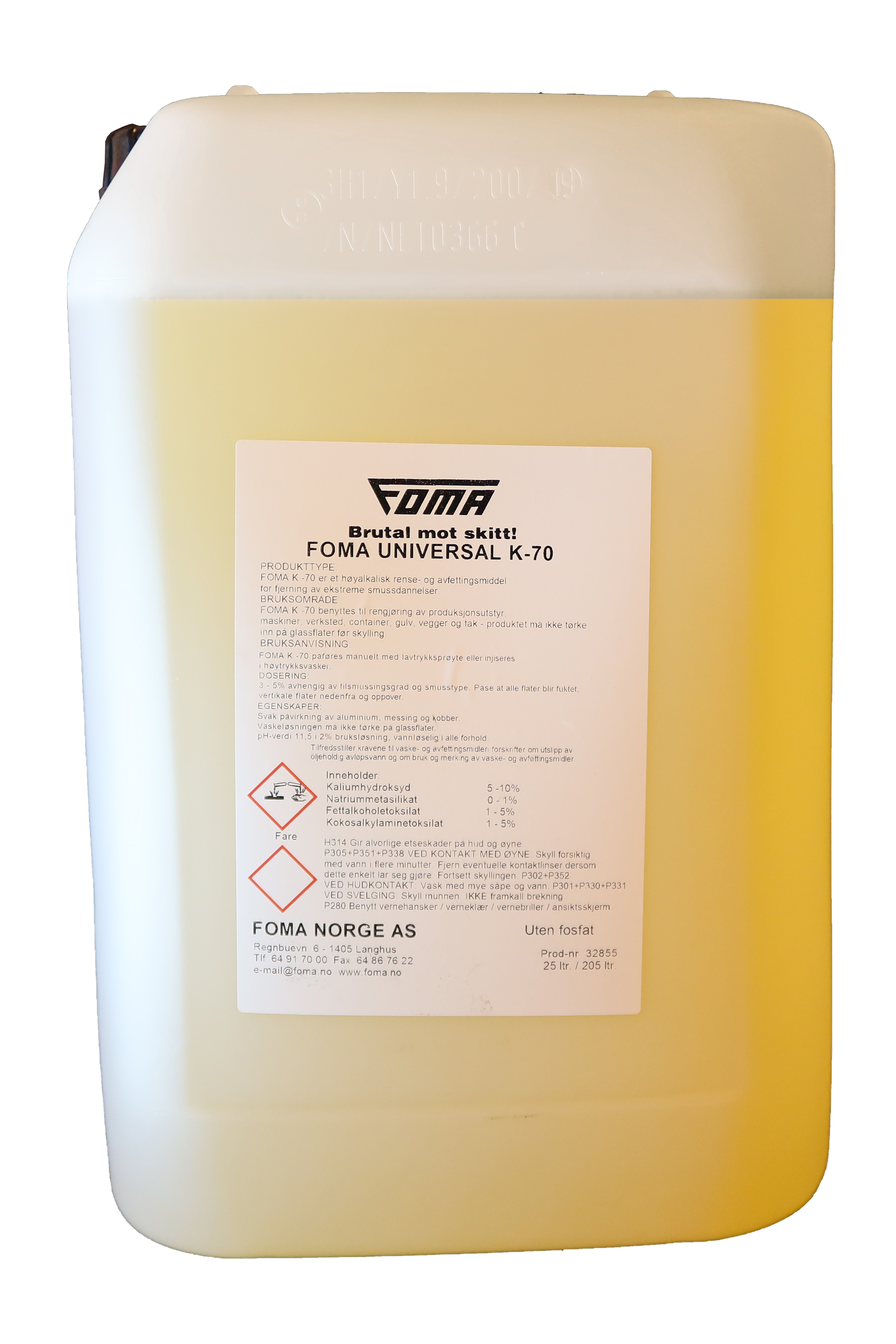 Produktinfo.Foma Universal K-70 er et sterkt flytende alkalisk rengjøringsmiddel.