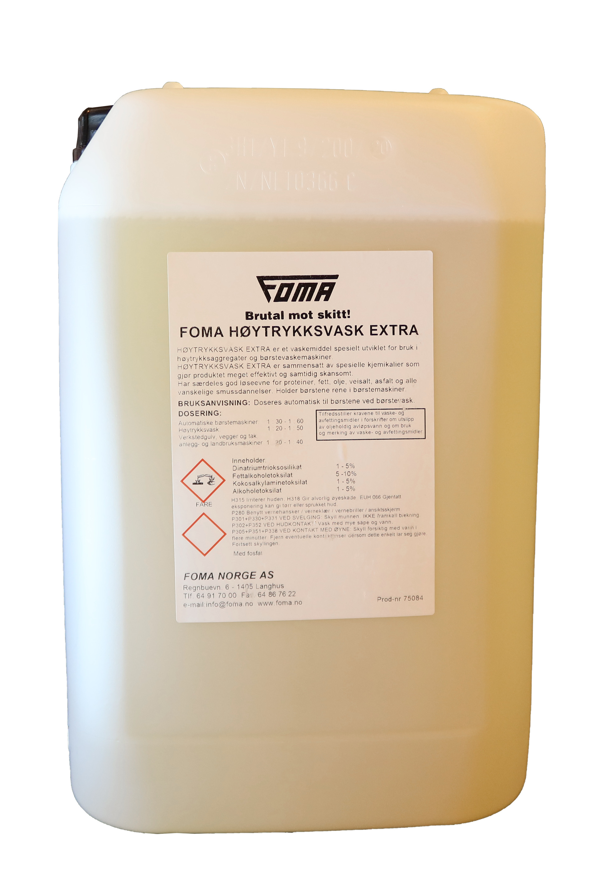 Produktinfo.Foma Høytrykksvask Ekstra er et ekstra kraftig og effektivt vannbasert vaske- og avfettingsmiddel beregnet for tyngre smussdannelser. Et spesialmiddel for bilvaskemaskiner.