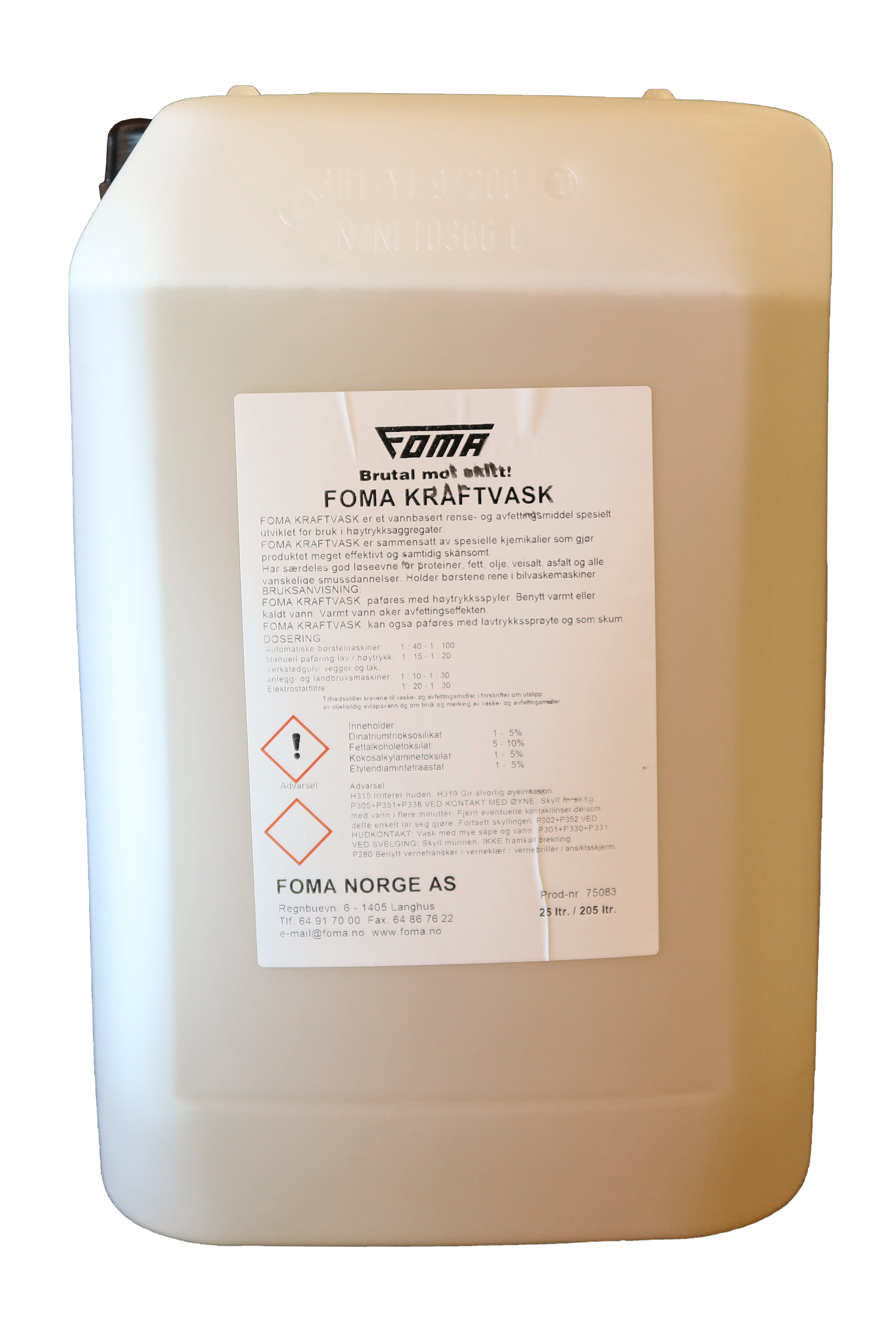 Produktinfo.Foma Kraftvask er et vannbasert vaske- og avfettingsmiddel spesielt utviklet for bruk i gulvskuremaskiner og for manuell rengjøring av verksted, lagergulv, osv.