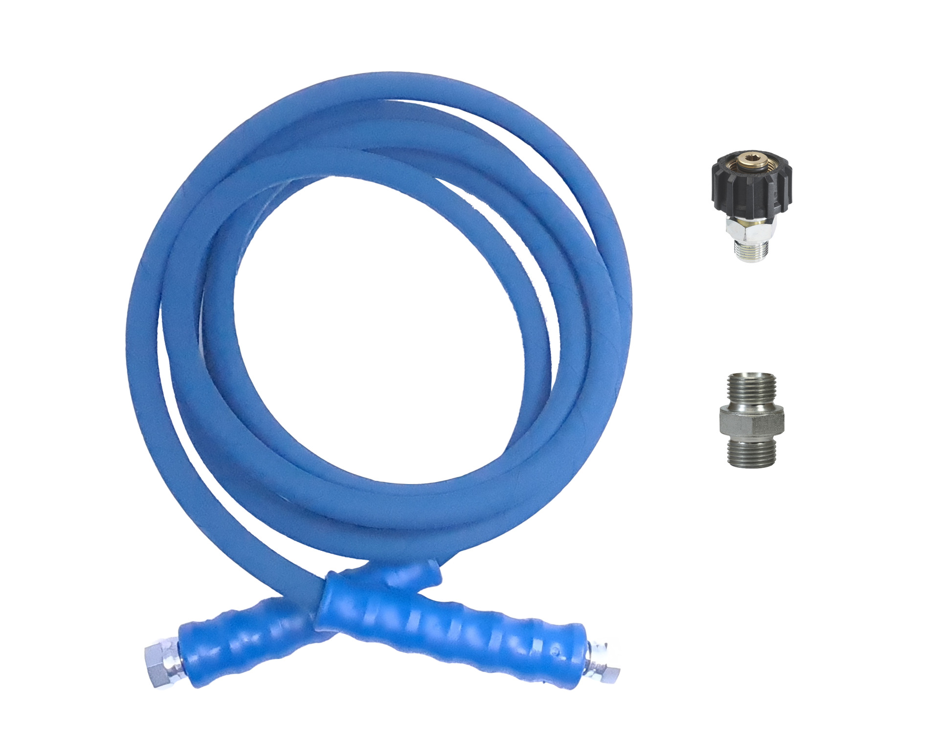 Produktinfo.Skjøtekit for bruk mellom slangetrommel og høytrykksvasker/pistol. Settet består av 1 x høytrykkslange, 1 x 3/8” ansats og 1 x skrukobling 3/8”-M22.