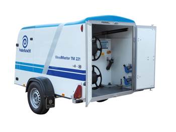 montert i en lukket skaphenger. Skaphengeren er laget i polyester og med forseglet bunn, noe som gjør den vanntett. Systemet driftes av en vannavkjølt Kubota dieselmotor. WeedMaster TM 221 har en mengde sikkerhetssystemer og er miljøvennlig og energibesparende. Den har en Aquabar saktegående stempelpumpe med rustfrie ventiler og justerbart trykk. Maskinen leveres med vannfilter på vanninntaket, 75 liter vanntank og avkalkningsfunksjon og har et kontrollpanel for justering av funksjoner og avlesning av verdier i forbindelse med bruk. Fjernkontroll kan bestilles separat.