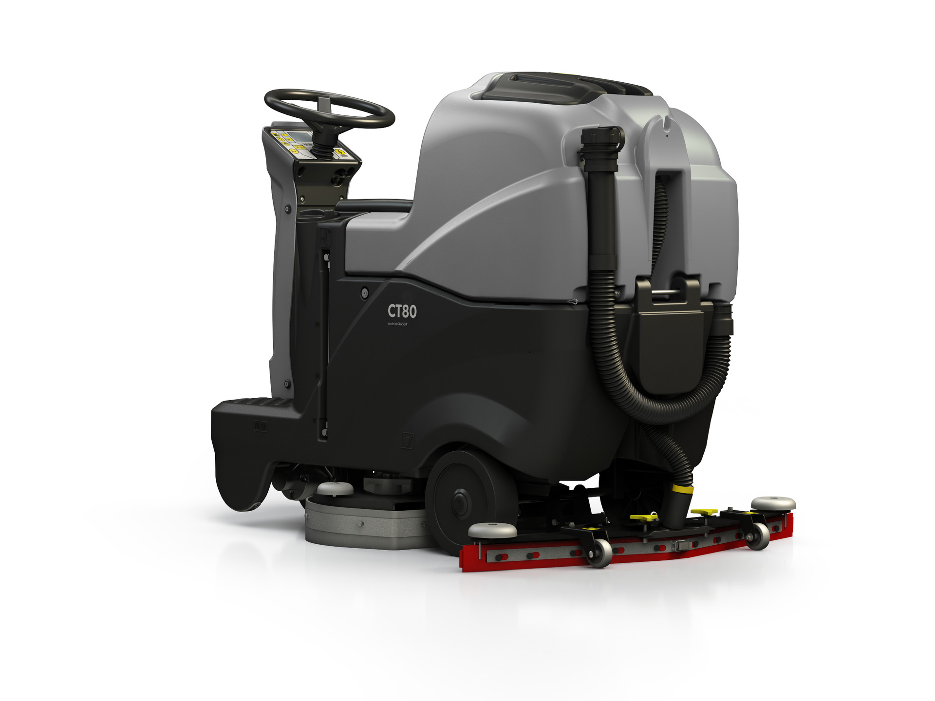 Produktinfo.CT80 BT60 er en sittbar gulvvaskemaskin med høy effektivitet. Maskinen har rentvannstank på hele 78,5 liter og skittenvannstank på 80 liter som gir lang operasjonstid. Den er selvgående, og har trinnløs hastighetsregulering på drift forover og bakover. Ettersyn av batterier, filtre og slanger er svært enkelt, fordi hele karosseriet kan vippes bakover. Maskinen har standard programmert 3 stk. vaskeprogram med mulighet for ytterligere et program med kjemidoseringssystem. 1-standard, 2-automatic, 3-economy og 4-chem-dose. Dette gjør maskinen meget enkel i bruk. Sammen med den patenterte sugenalen, vasker og tørker maskinen alle typer gulvflater svært godt. Eks. betonggulv, marmor, keramikkfliser, linoleum, gummi og tregulv. CT80 BT60 er en perfekt maskin for butikker, kontorer, skoler, hoteller, kirker, rengjøringsbyråer, industribedrifter, osv. Rengjøringskapasiteten er velegnet for mellomstore arealer.