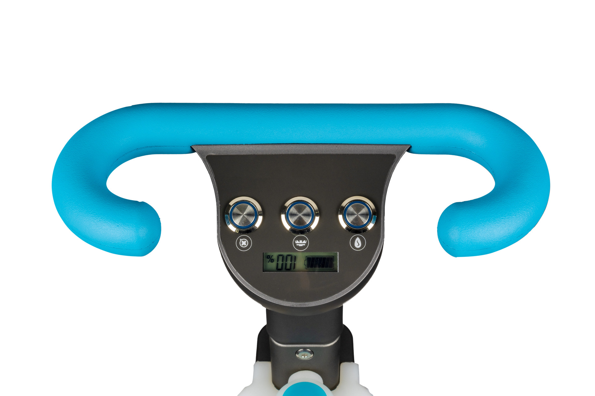 Mopman er en gulvvasker av små kompakte dimensjoner som erstatning for en mopp, samtidig som vi opprettholder en akseptabel vekt på maskinen som kan bæres av alle. Resultatet er en liten gulvvaskemaskin drevet av et litiumbatteri.