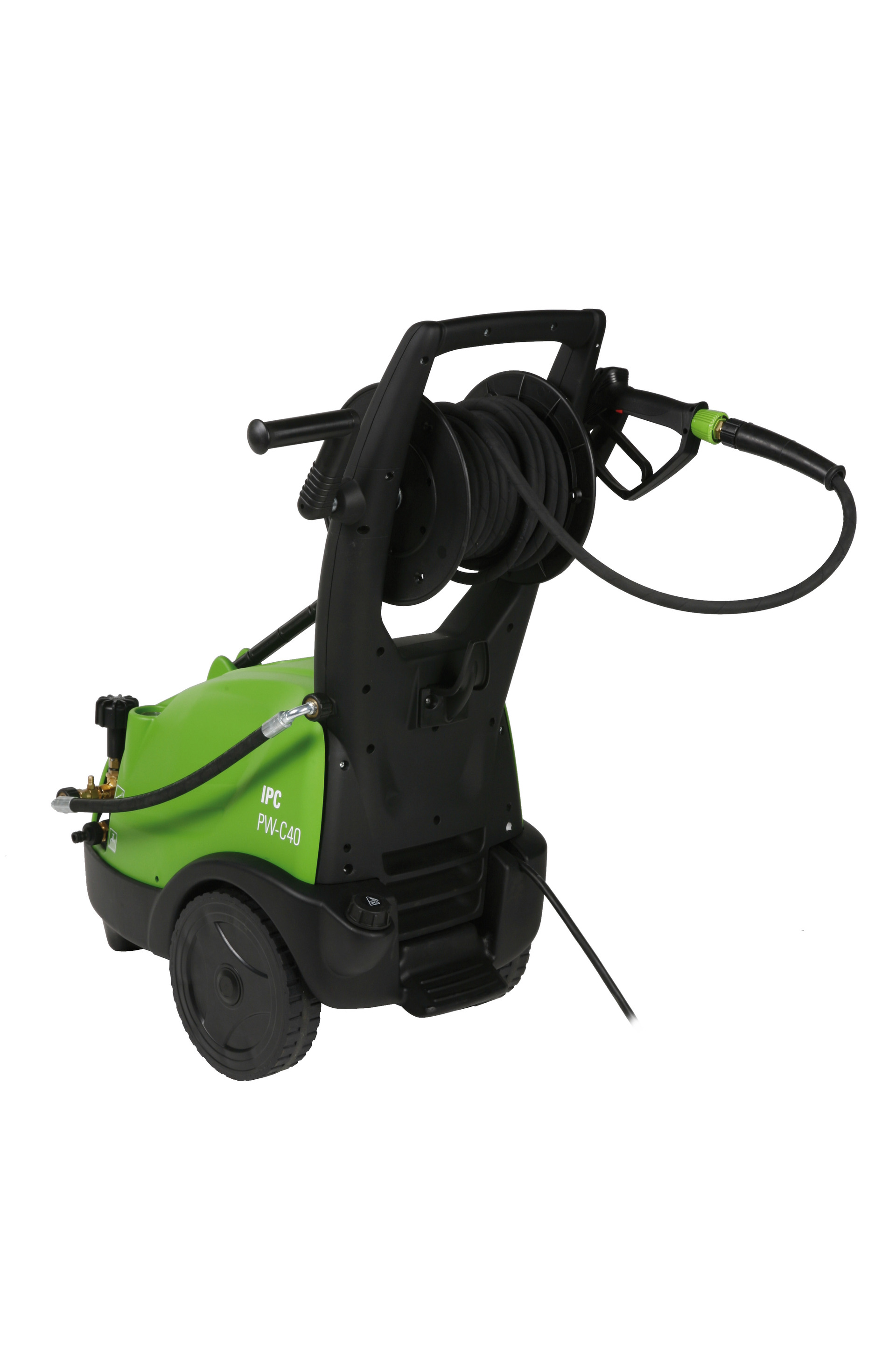 - Integrert ergonomisk håndtak, lanseholder og slangetrommel.