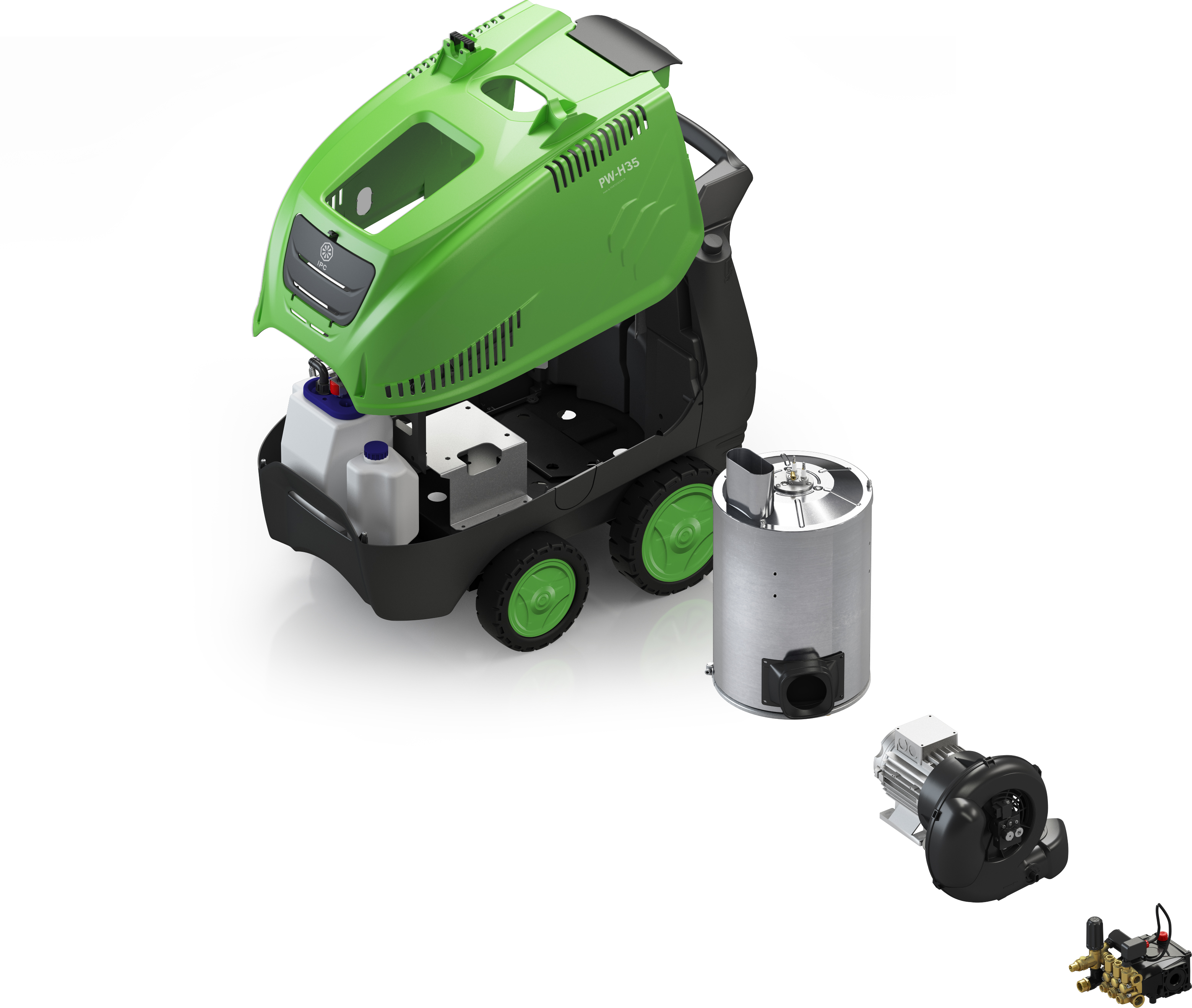 PW-H35/4S D1915 P4 T har et rustfritt stående brennkammer som sørger for maksimal varmeoverføring. Den har utvendig påfylling av drivstoff og kjemikalier.
