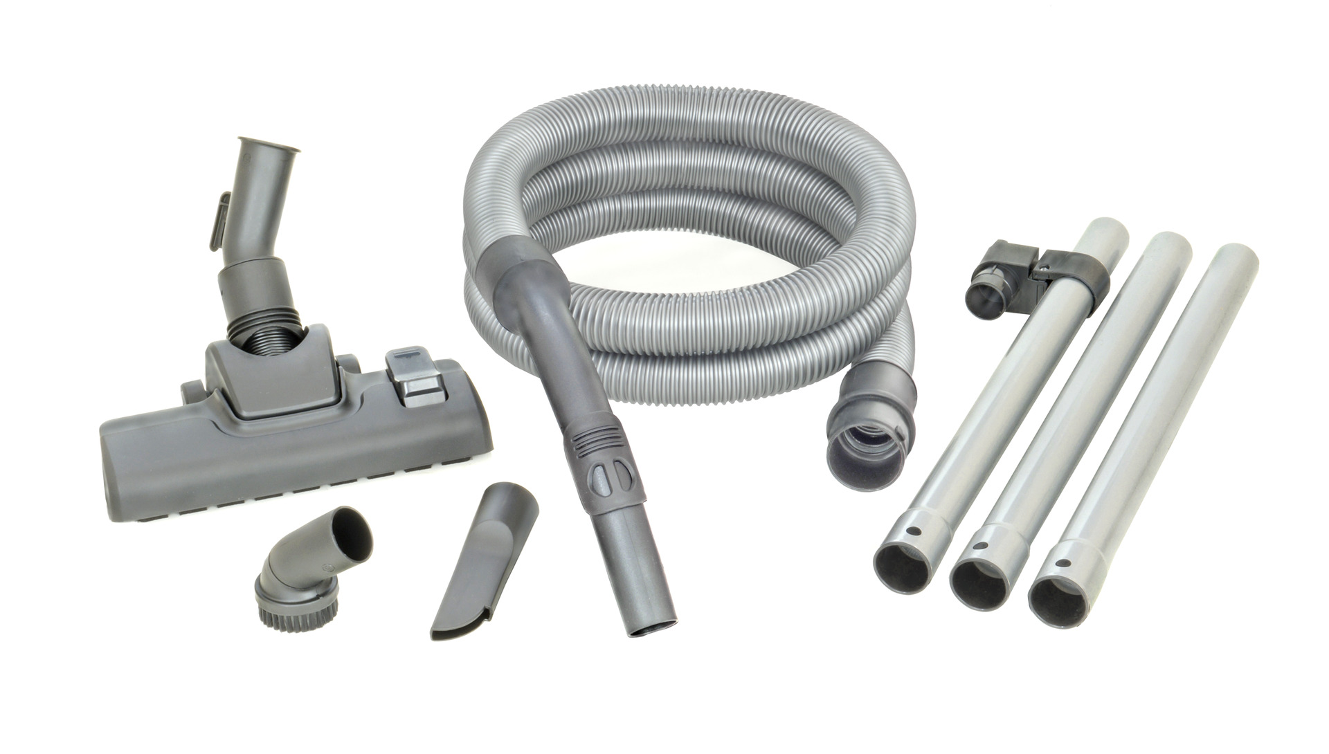 2,5 meter sugeslange Ø35 mm, 3 x sugerør, fugemunnstykke, møbelbørste og kombimunnstykke med hjul